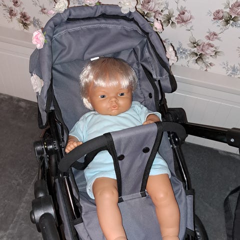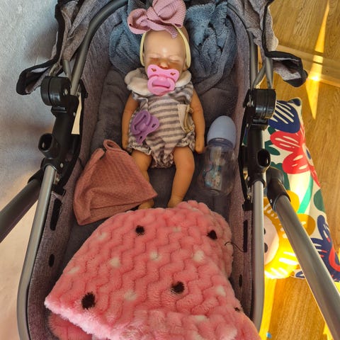 Docka m mjukkropp 50cm, kläder, sulky vagn, mjuklift och sittdyna till vagn. Allt i annons 400 kr