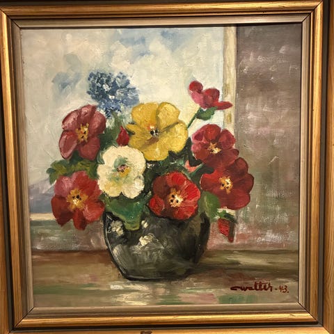 Tavla signerad oljemålning porträtt kvinna i röd sjal