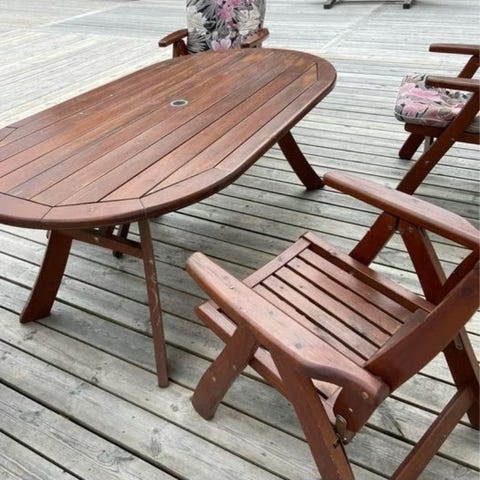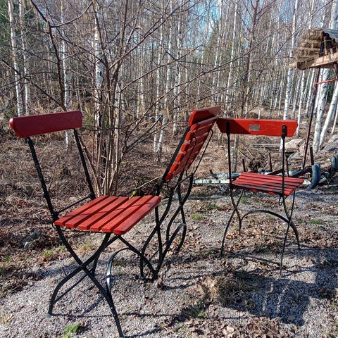 Grythyttan ute grupp 4 st a2 stolar plus bord 120cm och stolar med grön stomme. Bra skick nyslipat oljade mycket gott skick. Kan även vara behjälplig med hemkörning om så önskas.
