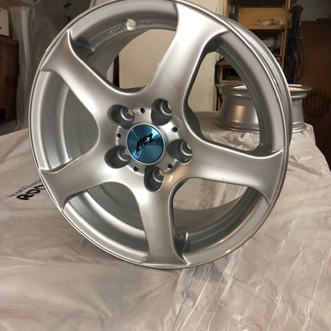 BBS 15 tum kryss-eke fälgar med 3 st. regum. dubbdäck. Hjulen användes de senaste 30 åren som vinteruppställning på våran BMW Z1 . ( ET mått är 24 )
