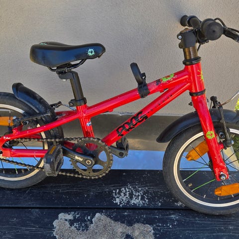 Frog barncykel med 14" hjul i blå färg.