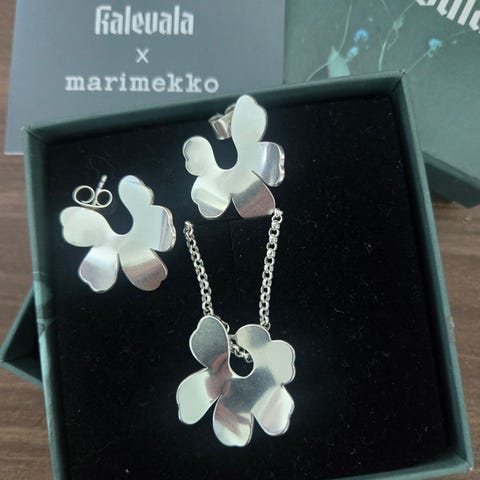 Pilgrim örhängen och ring. Örhängena har en dekorativ form som en blomma. Helt nya aldrig använda. . Present som inte föll mig i smak. 250 kr finns vid Hornstull