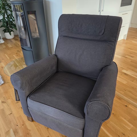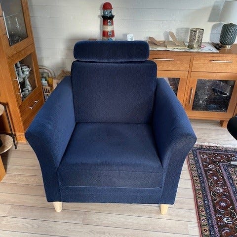 Säljer en fin och bekväm blå fåtölj i mycket fint skick.