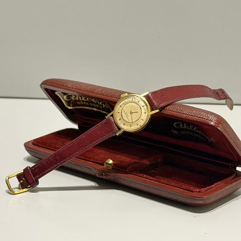 En av de mest omtalade verken(ref.1003) mekaniskt 1,64 mm supertunt verk. Renoverat 2010. Boett i 18 k guld även spänne. Safirglas.