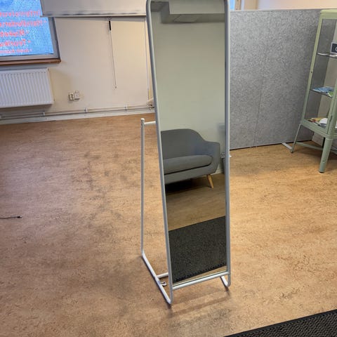 Hallmöbel med spegel, klädhängare, sko- och hatthylla i ett.