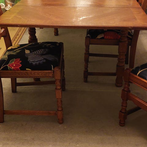 En bron matbord 130×85 bra skick och fint, passar med 8 stolar.