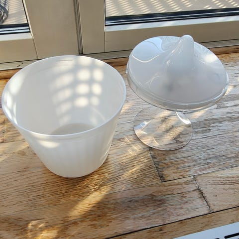Vit tygskärm med silverfärgad fot, begagnad, i bra skick,
