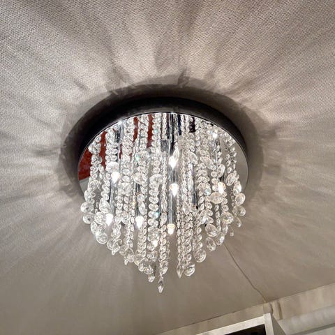 Fin lampa som ger en lyxig känsla passar som bäst i höga tak 40x40 och 80lång ca.