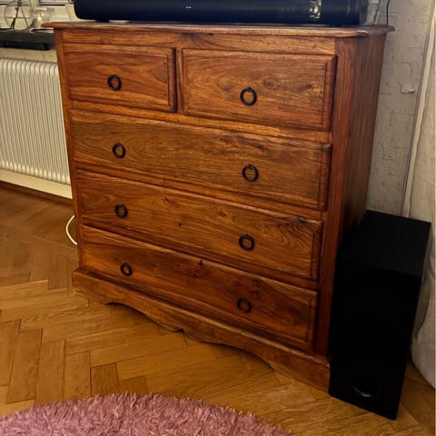Säljer min fina byrå! Använd som tv bänk här hemma. Skruvarna som håller lådorna på plats skulle behövas dras åt men annars i fint skick!
