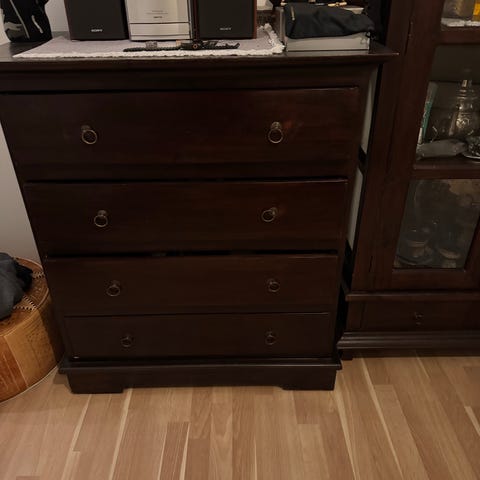 Mörkbrun byrå med fyra lådor