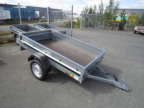 Här har vi en bra vagn för tillexempel gräsklippare eller skotrar. Går mycket bra att köra annat också! Vagnen är 3m lång och 150cm bred, utröstad med Tipp för enkel lastning, baklämmen är beklädd med Aluminium.