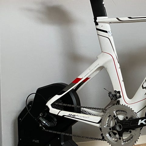 Har även en trainer med olika delar så den fungerar till vilken cykel som helst, trainern fungerar utmärkt och går att koppla till Zwift