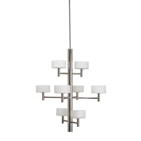 Vacker taklampa i krom från märket EGLO, modellen heter Tarandell. Led i frostat glas, dimbar och höjden är justerbar.