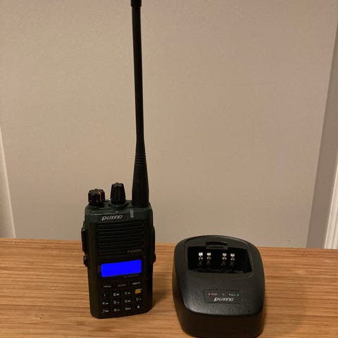 Zodiac Team Pro Plus komradio i svart utförande. Radion arbetar på frekvensområdet 403–470 MHz enligt märkning på baksidan. Setet på bilderna inkluderar flera handhållna enheter med antenn, bordsladdare, lösa batteripack samt externa mikrofoner/högtalare med spiralsladd. Strömadaptrar till laddarna ingår enligt bild. Lämplig för kommunikation i exempelvis arbetslag eller föreningsverksamhet där licensierad komradio används. Exakta antal enheter och detaljerade tekniska specifikationer framgår inte fullt ut av underlaget och kan kontrolleras mot märkning på respektive enhet.