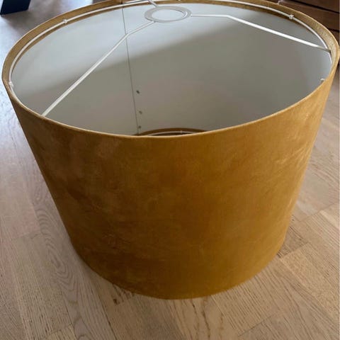 Artwood lampskärm. Insida i slät, ljusgrå yta med metallställning för montering på lampfot. Passar exempelvis bordslampa eller golvlampa beroende på mått och sockel på lampfoten.