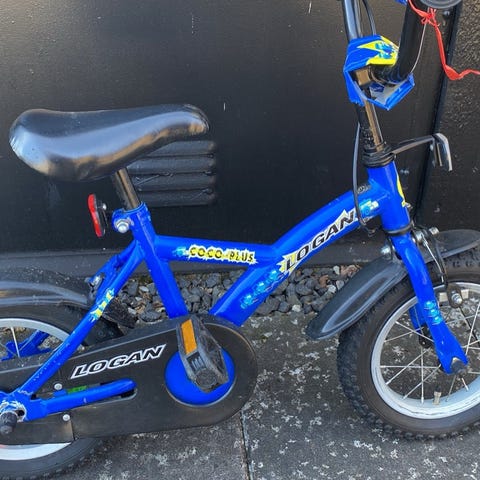 Barncykel med 12" hjul i rosa och vitt. Utrustad med stödhjul, kedjeskydd, skärmar fram och bak samt handbroms. Passar mindre barn som ska lära sig cykla eller som första cykel efter springcykel.