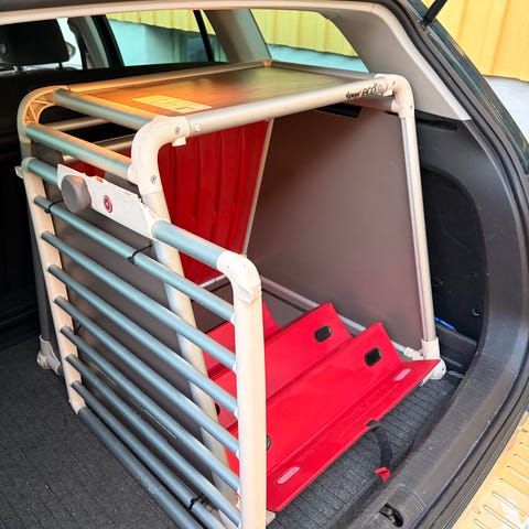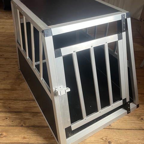 4pets ProLine hundbur för transport av hund i bil. Buren är tillverkad i aluminium och kompositmaterial med bruna paneler och ljusa aluminiumprofiler. Gallerfront med dörr och säkerhetslås samt sned bak- och framsida anpassad för montering i bilens bagageutrymme. Ventilationsöppningar ger god luftcirkulation och en löstagbar bottenmatta ger hunden en mjukare liggyta. Avsedd för säker transport av hund i personbil och kombi.