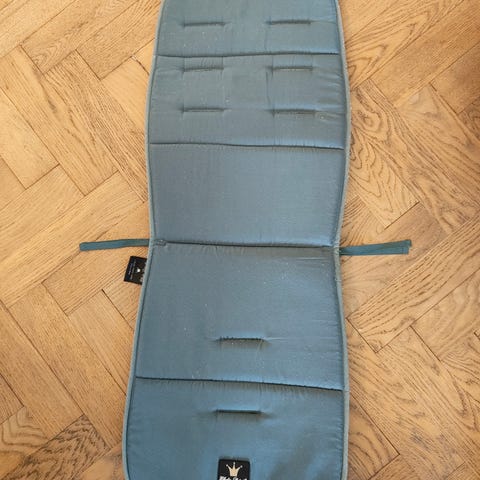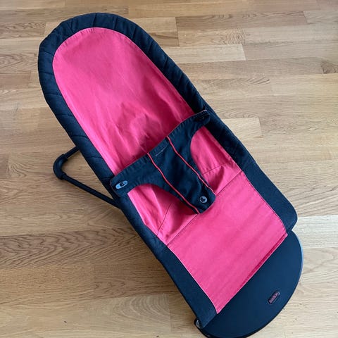 Fin babysitter från Babybjörn som kan ändras i tre lägen. Går att gunga med foten. Nytt tyg har köpts, men är inte från Babybjörn, är använt av en bebis. Tyget är lite blekt på några ställen.