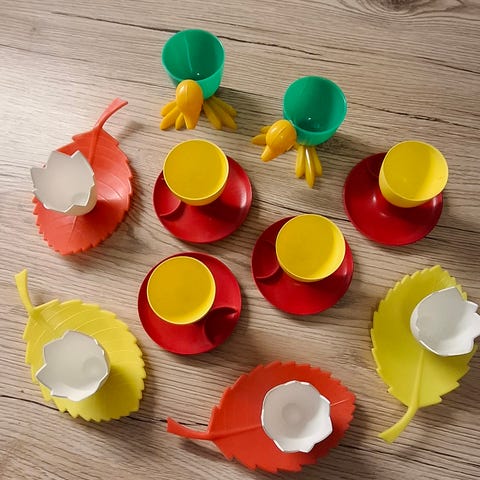 Sju stycken äggkoppar + en riktigt gammal på fot.