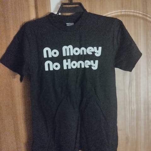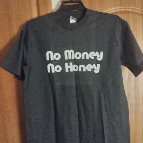 Jag säljer nu en t-shirt för herrar i storlek XL. T-shirt är grå och tillverkad i 100 % bomull. Kortärmad modell med rund hals. Tryck på framsidan med texten "NO MONEY NO HONEY". Passar som vardagsplagg eller fritidströja.