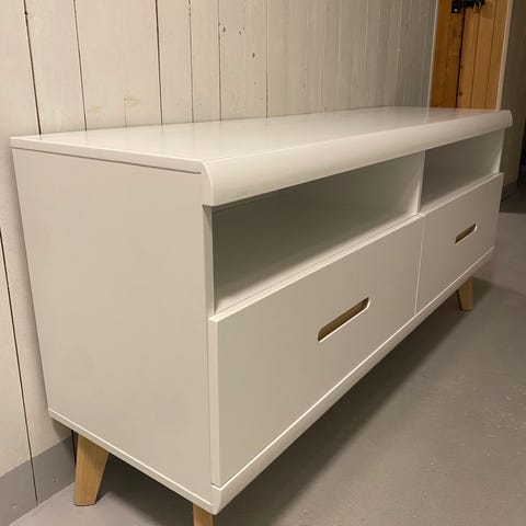 Avlastningsbänk i bra skick! Kommer ej ihåg vart den är inköpt. Bänken är svart med träimitation på skivorna. 114cm bred, 79cm hög och 35,5cm djup.