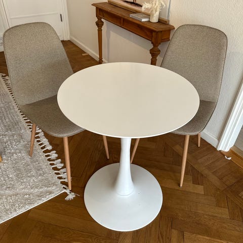 Skicket är okej använt och den har en liten skada på bordsytan (se bild) men utöver de så är de ett väldigt fint matbord och bekväma stolar.
