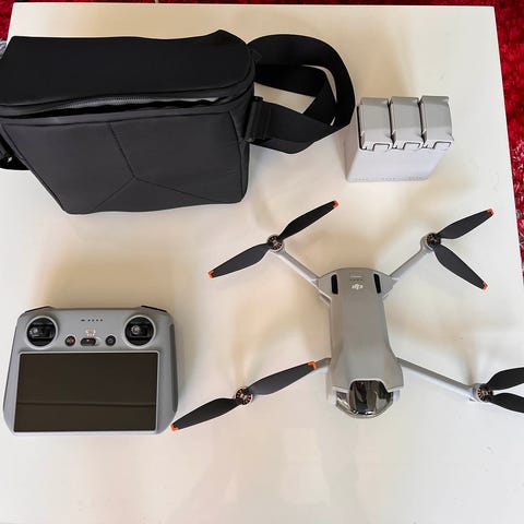 DJI 4k Mini drönare i vit färg. Kompakt quadcopter med infällbara armar och fyra propellrar. Utrustad med kamera monterad på gimbal för stabiliserad video- och fotoanvändning. Passar för flygning utomhus och luftfoto där en lätt och portabel drönare behövs.
