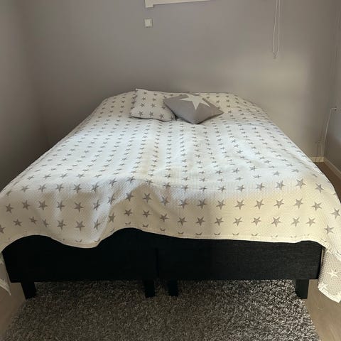 Kontinental dubbelsäng 180 cm inköpt 2010 mjuk madrass vändbar även om skillnaden är knappt märkbar men himla go att ligga i.