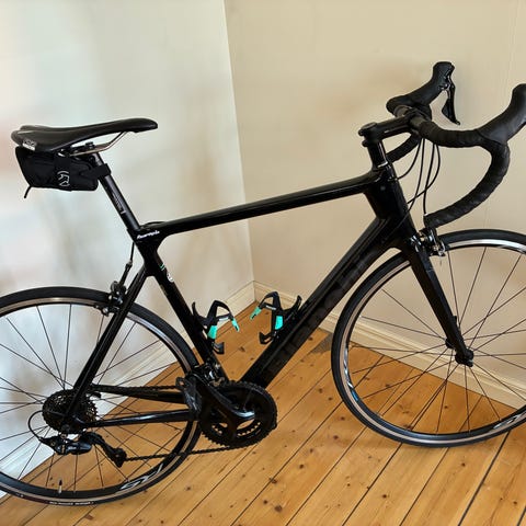 Det var först min fars, sen fick jag den, men ingen av oss har lagt särskilt många mil på den. (Ramstorleken är 56 & Vi båda är 180 cm).