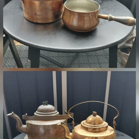 2 st antika kopparkastruller / 1 st stekpanna