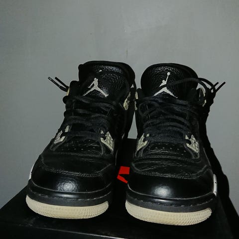Jordan sneakers i storlek 38. Modellen har ovandel i syntet/läderliknande material i svart med blå och grå detaljer samt mönstrad sula och tåparti. Skorna har snörning framtill och vadderad plös och häl för ökad komfort. Passar som vardagsskor eller för fritidsaktiviteter.