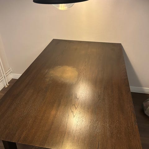 Fint matbord för många, ingår 2 st iläggskivor som är handgjorda som sätts in på sidorna. Extra skivorna är svarta, som inte syns när man har en duk på. Då får man plats med många typ 12 pers