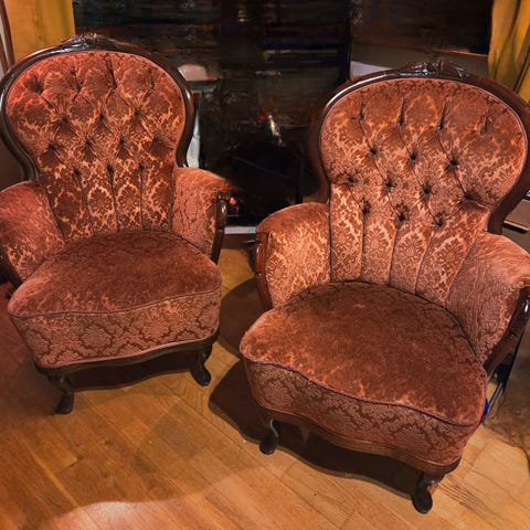 Soffa i rokokostil. Äldre, men bra skick. Vinröd.