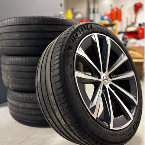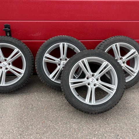 Fyra däck med fälgar som rullat en säsong (3,5 månad) Har suttit på en Volvo v90 tidigare.