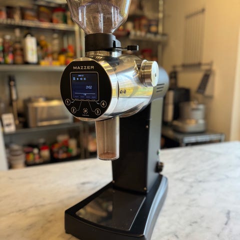 En mycket sparsamt använd espressokvarn, handbyggd i Milano i en snygg design. Stor bönbehållare och steglös justering av malningsgrad.