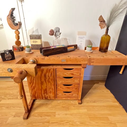 Inga saker på bilden ingår förutom snickarbänken.