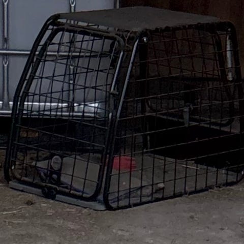 Rubust bur använd ca 2 månader pga att hunden somnat in o det blir ingen mer.Stått i varmföråd ca 8 månader.Nypris 10.800kr L 101 cm D 90 cm H 63 cm jag har lagt trägolv med gummimatta och klätt in den med presenning kan tas bort. Ingår krokar vattenskål o mellanvägg. 7000kr eller bud