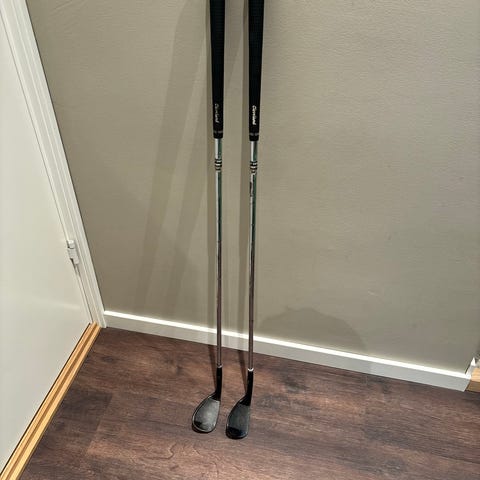 Cobra RAD Speed golfklubbor bestående av driver och hybrid 3. Klubborna har huvuden i metall med svart och grönt färgschema och skaft i grafit. Bägge har justerbar loftinställning och viktning i sulan.