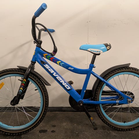 Sjösala Tiara barncykel med 20" hjul. Cykeln har svart ram med lila detaljer och stänkskärmar samt ljus sadel. Utrustad med framkorg, pakethållare bak, stöd och ringklocka. Passar som vardagscykel för barn i den storlek som använder 20-tumshjul.