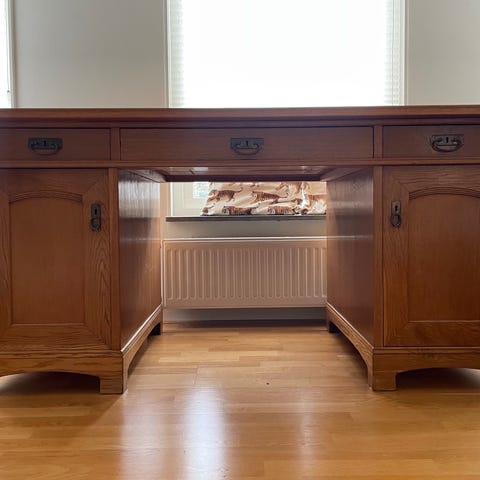Praktiskt skrivbord i äldre stil.