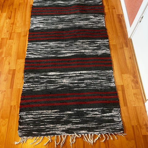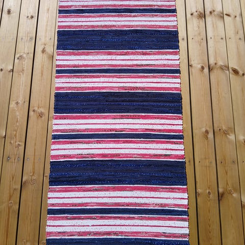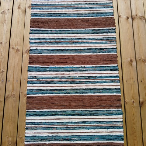 Vävd med dubbla trasor för lång livslängd och med tvinnade fransar som är extra hållbara. Längd 160cm bredd 80cm.