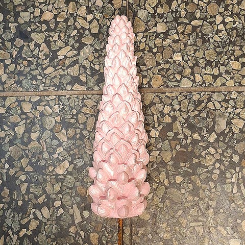 En rosa dahlia gjord i betong. Den är fastgjuten på ett kraftig stålspett. Snyggt att sticka ner till exempel i en kruka alternativt i en rabatt.