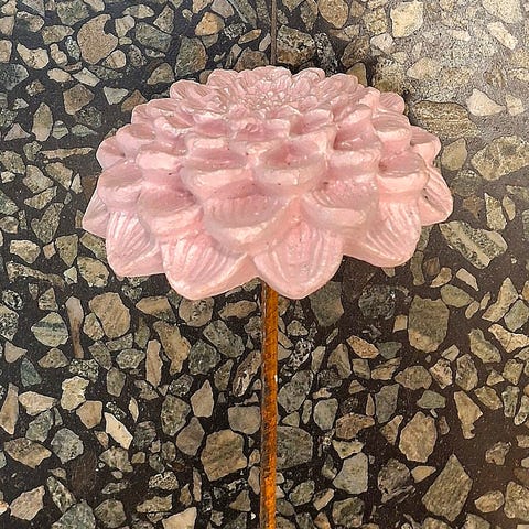 En rosa lupin gjord i betong. Den är fastgjuten på ett kraftig stålspett. Snyggt att sticka ner till exempel i en kruka alternativt i en rabatt.