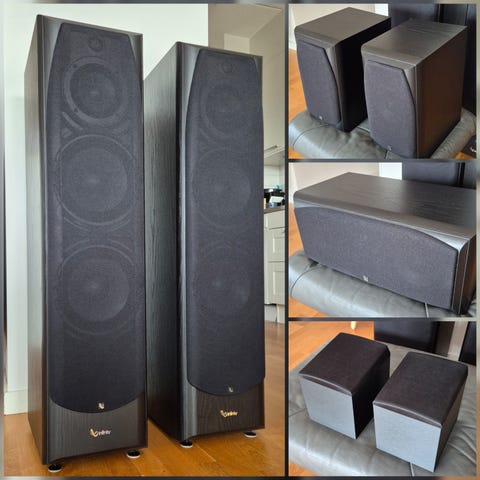 Harman Kardon 5.1 hemmabiosystem med flera högtalare och subwoofer i svart. Systemet består av en centerhögtalare, 2st golvstående högtalare, 2 högtalare och en aktiv subwoofer. Passar för användning tillsammans med hemmabioförstärkare eller receiver för film, tv och musik. Högtalarna är utformade för placering både på golv och i tv-möbel eller hylla. Subwoofern är fristående och ansluts med kabel till förstärkaren. Oppo regionsfri blu-ray spelare kan medfölja vid överenskommelse om pris.