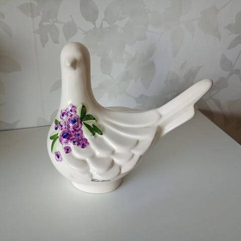 Rosa Ljung får Deco keramik i Helsingborg vita porslinsfigurer fåglar och häst