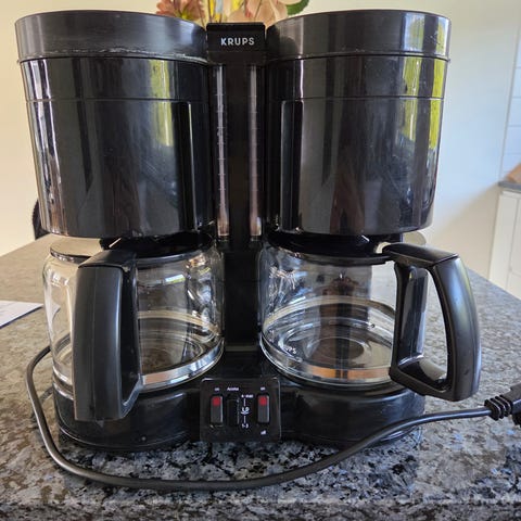 OBH Nordica kaffebryggare med dubbel bryggdel och två glaskannor. Väldigt lite använd. Modellen har separata vattenbehållare och filterhållare för varje sida, vilket gör det möjligt att brygga två kannor kaffe samtidigt eller var för sig. Kaffebryggaren är svart och utrustad med auto-stop-funktion samt separata strömbrytare för varje bryggdel. Passar för hushåll eller mindre kontor där man vill kunna brygga större mängder kaffe eller olika styrkor samtidigt.