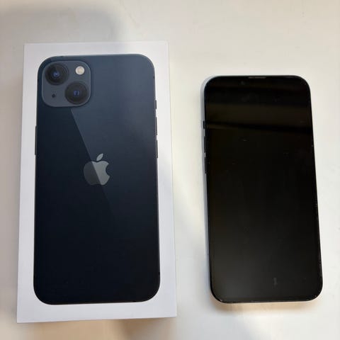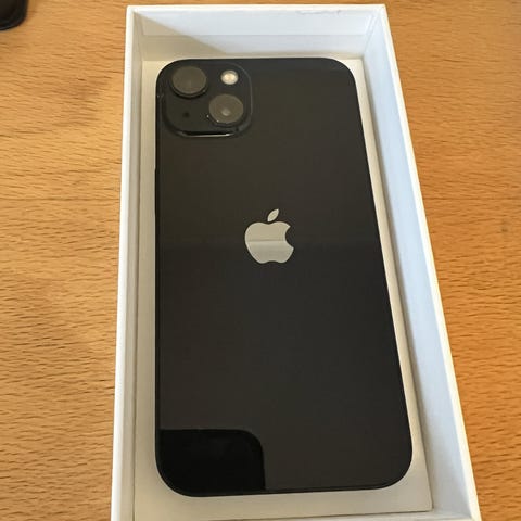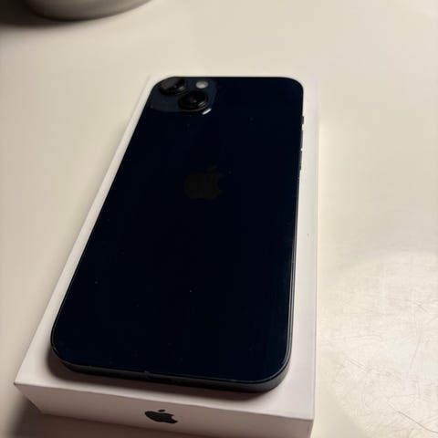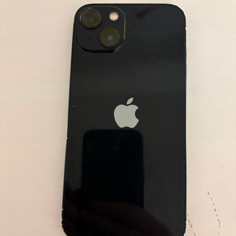 Apple iPhone 14 smartphone med 256 GB lagringsutrymme. Enheten visas i svart färg med dubbel bakre kamera och blixt. Passar för daglig användning, surf, appar, foto och video samt lagring av filer och media. battery capacity 94%