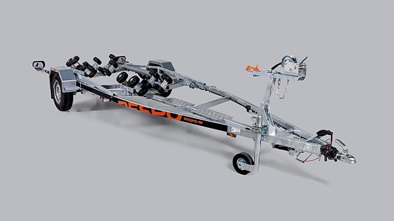 professionella detaljer såsom polyuretan kölrullar, uthållig vagga och fullstora 155R13 hjul. Denna trailer tar med lätthet båtar up till 14 fot och lastar 538 kg.
