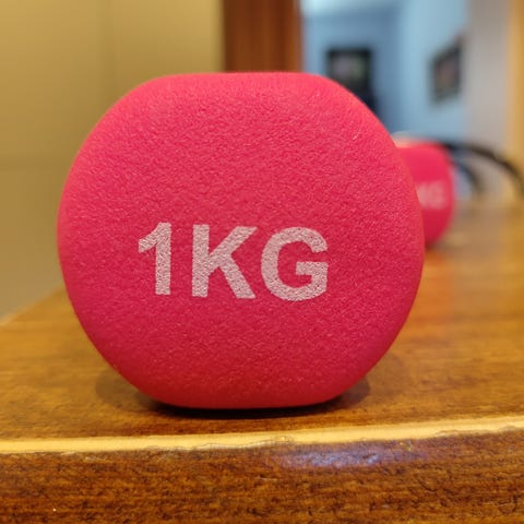 Hantlarna har sexkantiga ändar som ligger stadigt mot underlaget och ett rakt grepp.