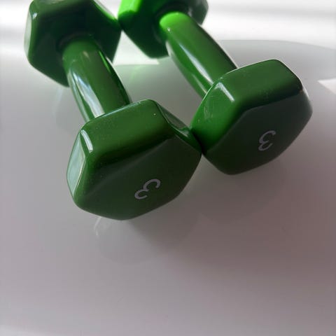 Hantelset med två hantlar på 3 kg styck i ljusgrön färg.